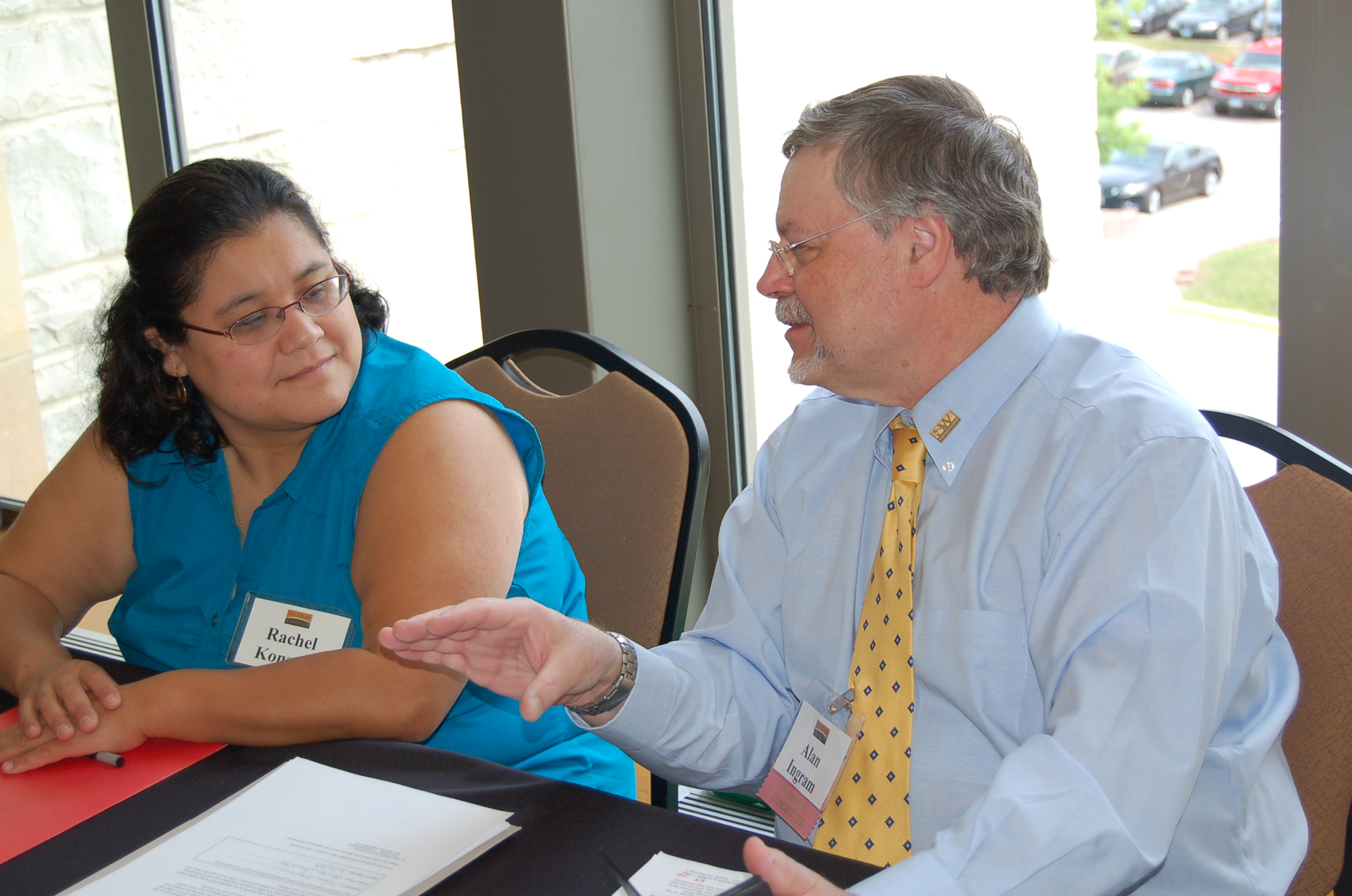 - Alan Ingram, Exec. Dir., NASW-MN, & Rachel Konzem register participants